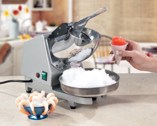 Sportsman Series Electric Ice Shaver. ON SALE! If you're into cold drinks, sno-cones and platters of shrimp cocktail, this is a must-have appliance! Entertaining just got more exciting! Effortlessly creates perfect mounds of shaved ice instantly. Perfect for tropical cocktails and delicious ice desserts such as slushes and frosty drinks. Chills beverages fast, tastes great. Keep food fresh on elegant ice beds for salads and buffets. Great for ice buckets, too. Heavy cast base; Aluminum hopper and shaving head; Hardened shaving blade has extraordinary chopping capacity and chips ice quickly and